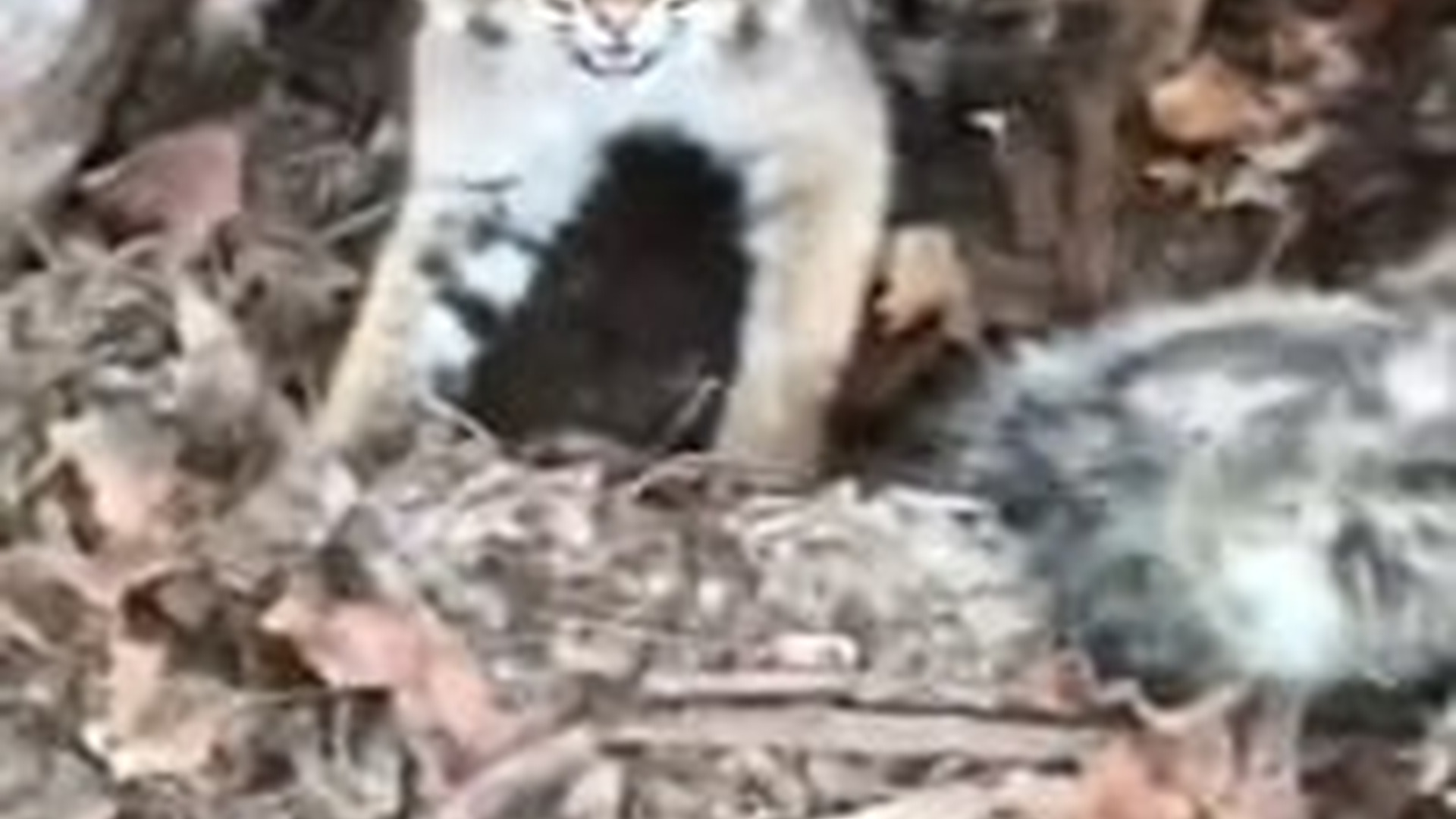 N2104026_Wild bobcat protecting its injured cub lying nearby