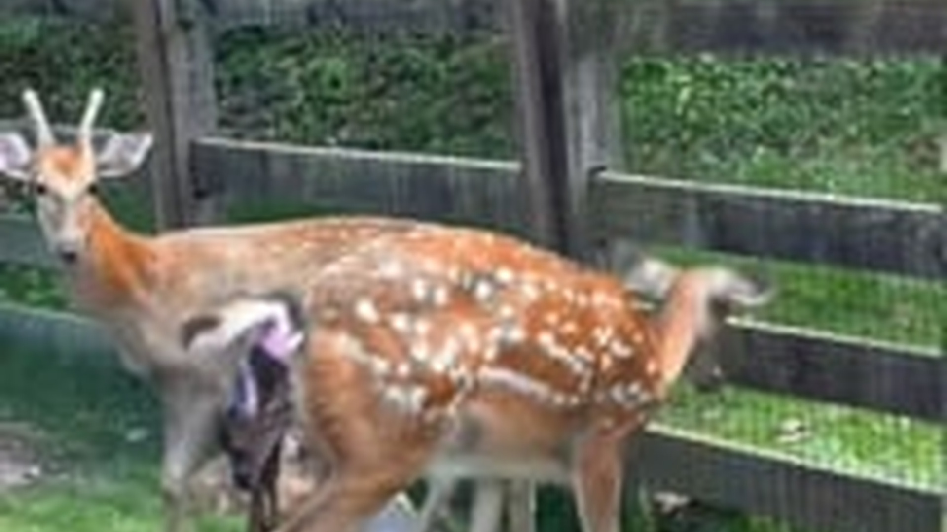N2104028_Deer suffering severe birth complication inside fenced enclosure