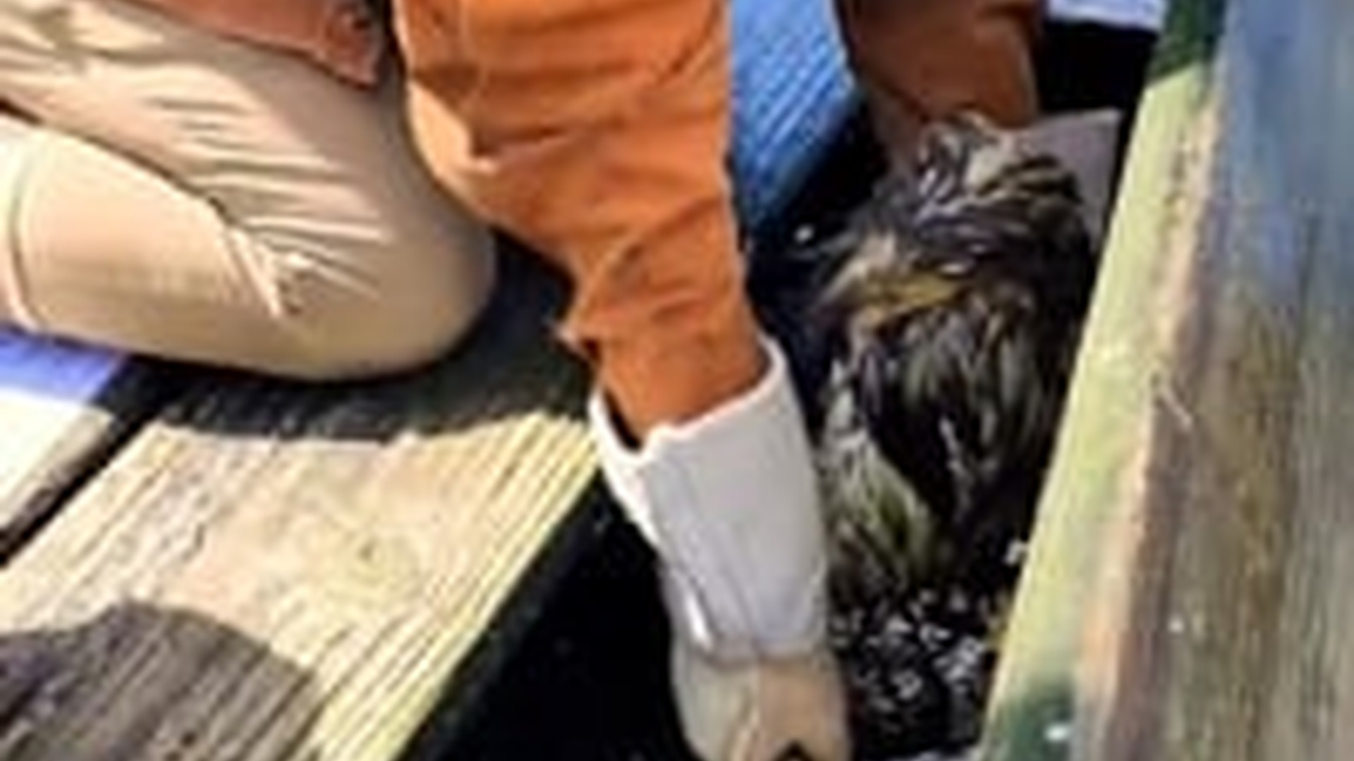 N2104058_Rescuer carefully holding soaked bird covered in water during rescue process