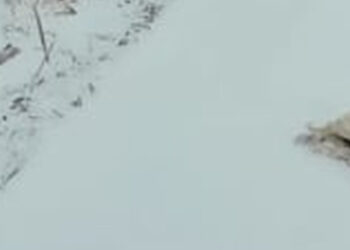 N0504042_puppy was curled up in snow. When approach